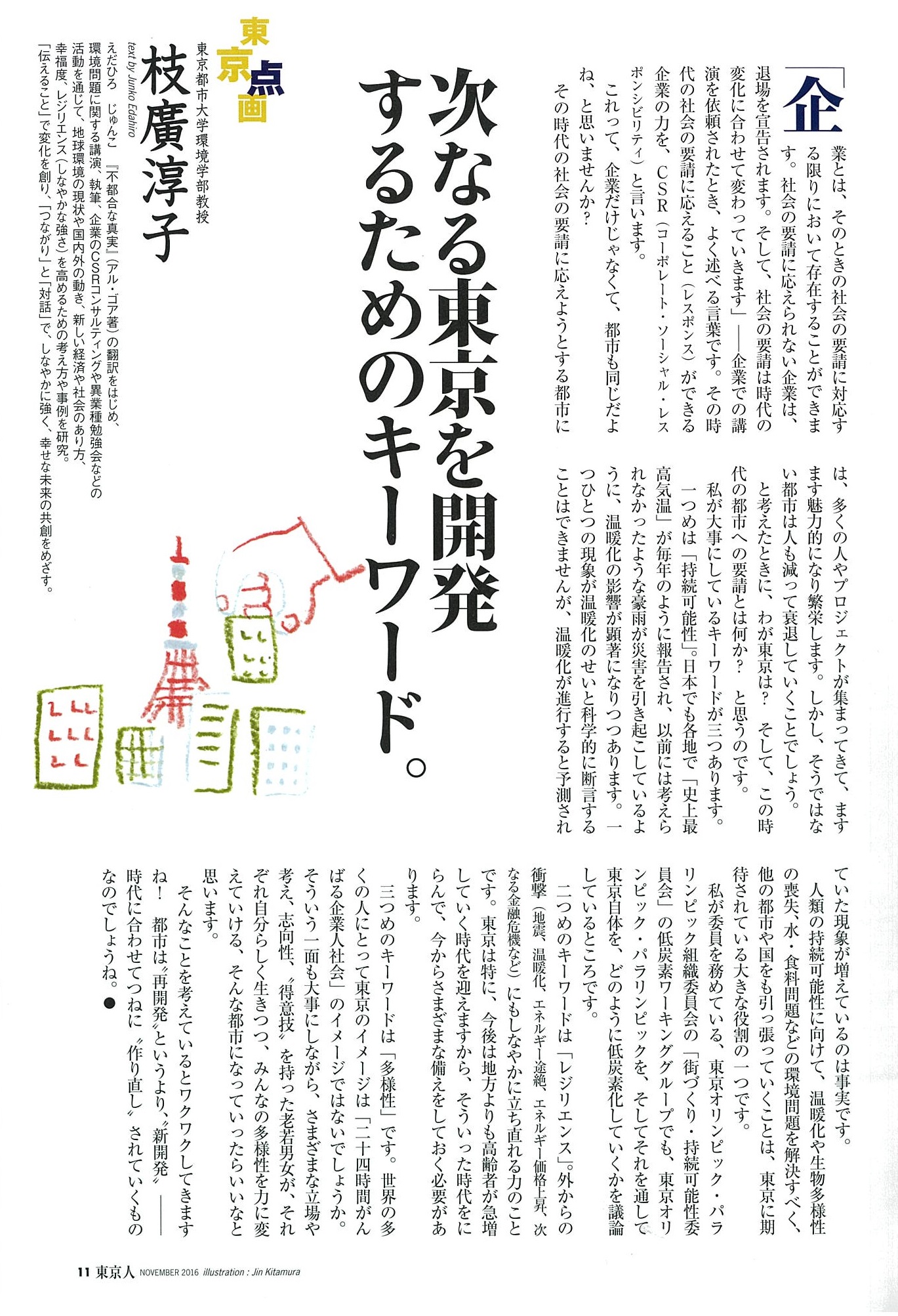 2016年10月3日発売の「東京人」巻頭随筆「東京点画」11月号に寄稿いたしました。